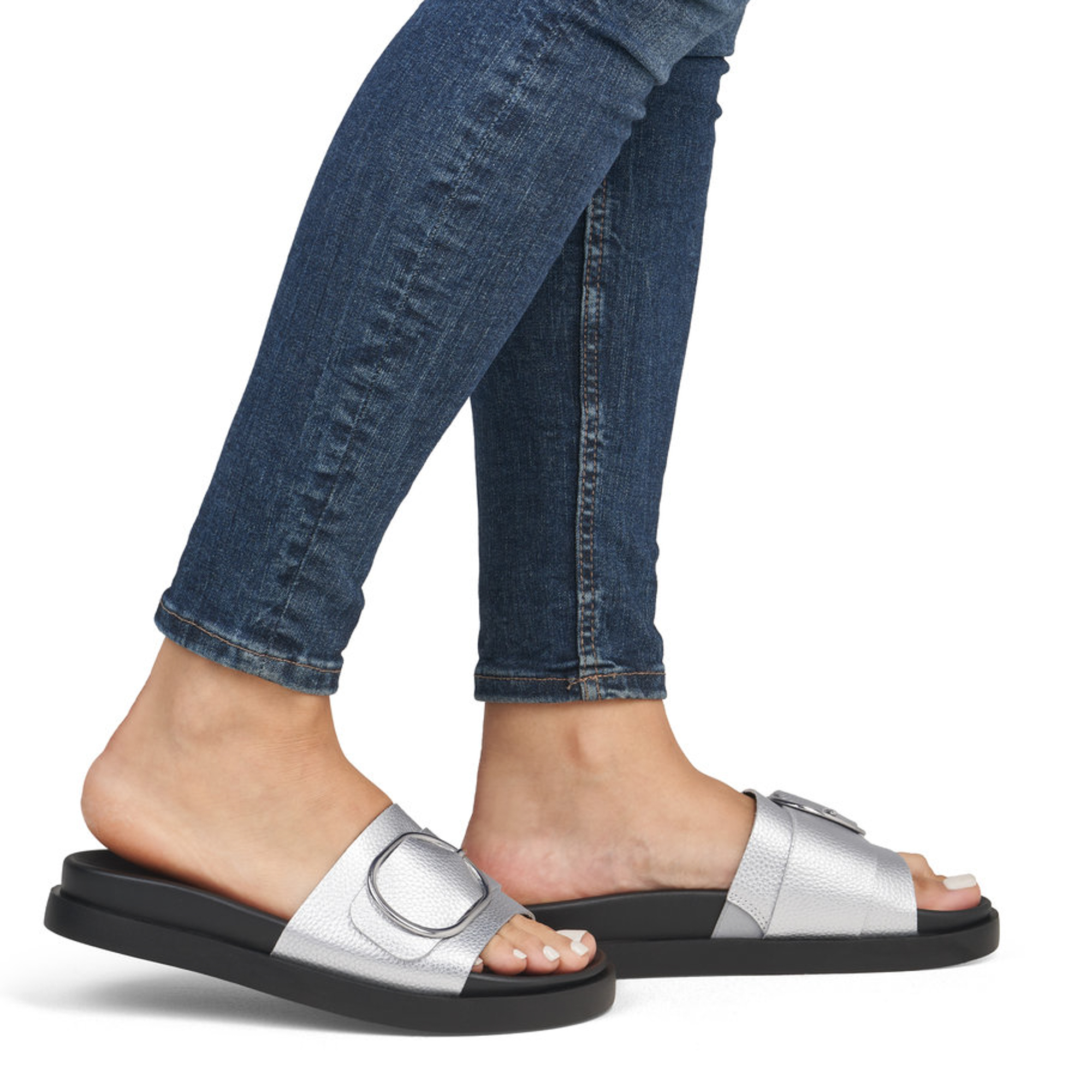 • detail Dámské pantofle Rieker W1453-90 stříbrná